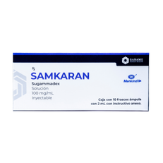Sugammadex puede ser administrado misma vía de infusión con las siguientes soluciones intravenosas: cloruro de sodio 9 mg/ml (0.9%), glucosa 50 mg/ml (5%), cloruro de sodio 4.5 mg/ml (0.45%) y glucosa 25 mg/ml (2.5%). Solución Ringer lactato, solución Ringer, glucosa 50 mg/ml (5%) en cloruro de sodio 9 mg/ml (0.9%)