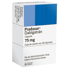 Prevención del accidente cerebrovascular y la embolia sistémica y reducción de la mortalidad vascular en pacientes con fibrilación auricular: En el estudio RE-LY que investigó la prevención de EVC y embolismo sistémico en pacientes con fibrilación auricular, un total de 12,042 pacientes fueron tratados con etexilato de dabigatrán. De ellos, 6,059 fueron tratados con etexilato de dabigatrán 150 mg, dos veces al día, mientras que 5,983 recibieron dosis de 110 mg dos veces al día.