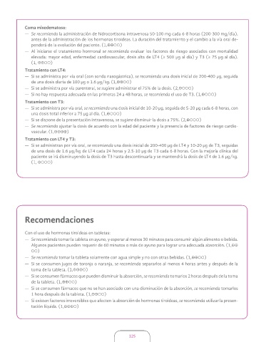 — Si se administran por vía oral, se recomienda una dosis inicial de 200-400 μg de LT4 y 10-20 μg de T3, seguidas